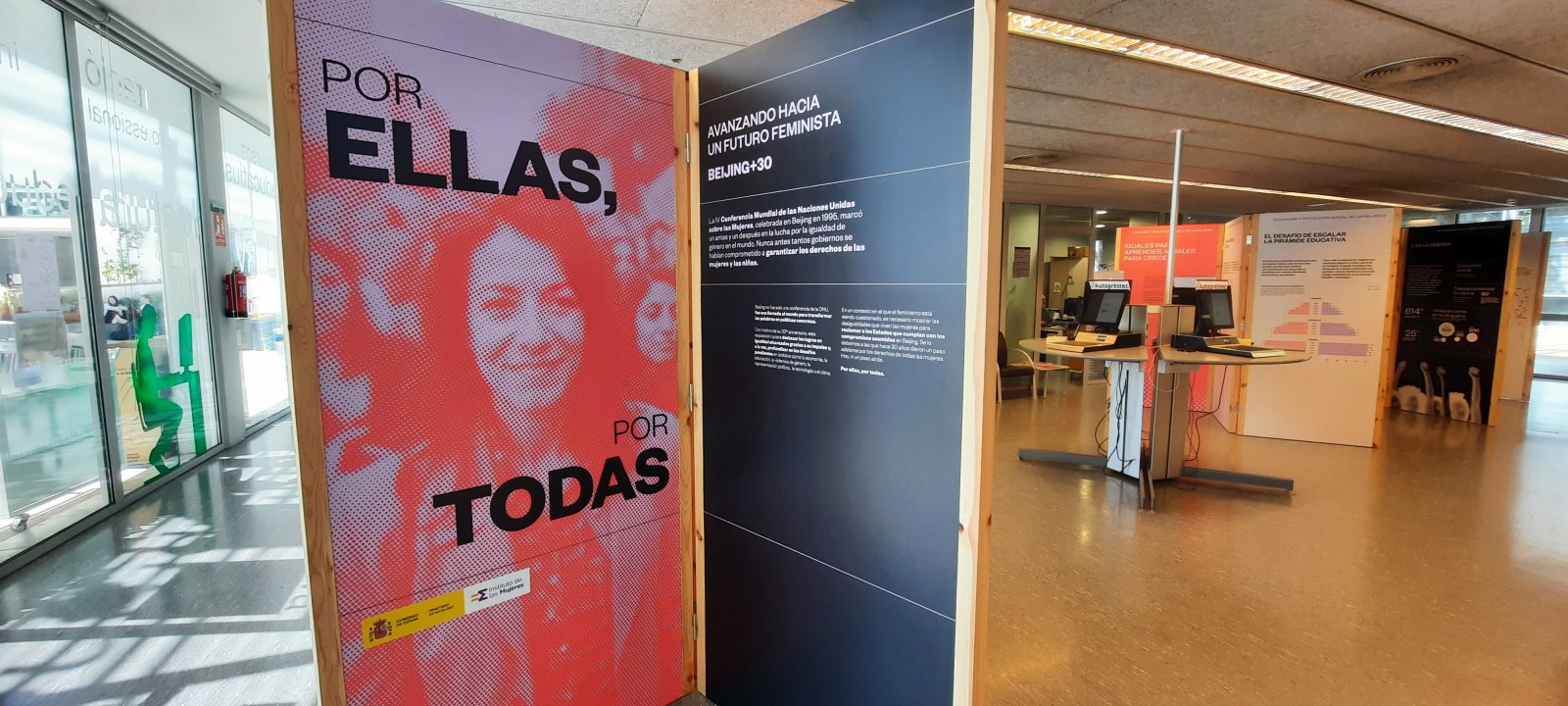 La mostra, formada per 50 panells distribuïts en vuit mòduls temàtics, aborda les desigualtats entre dones i homes en àmbits clau com l'economia, l'educació, el lideratge, la salut, la lluita contra les violències masclistes, la crisi climàtica i les noves tecnologies. L'exposició recorda els compromisos adoptats a Beijing i posa en relleu la necessitat de continuar exigint-ne el compliment.